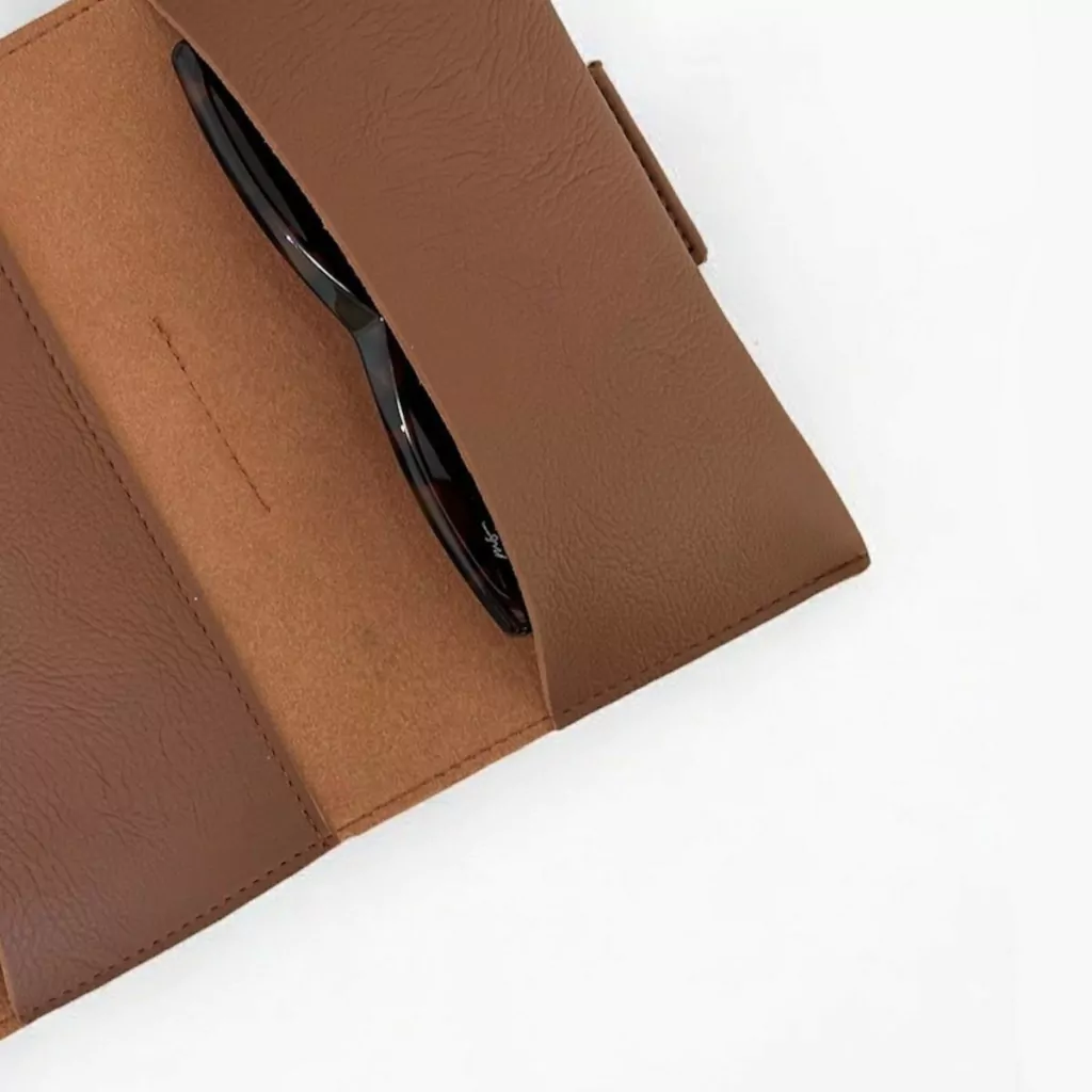 O Travel Pack de óculos, confeccionado em couro sintético ecológico na cor marrom, é um acessório indispensável para viajantes que valorizam praticidade e elegância. Com um design inteligente e compacto, este pack oferece compartimentos organizados para armazenar seus óculos de forma segura e protegida. Ideal para manter seus óculos livres de arranhões e danos.